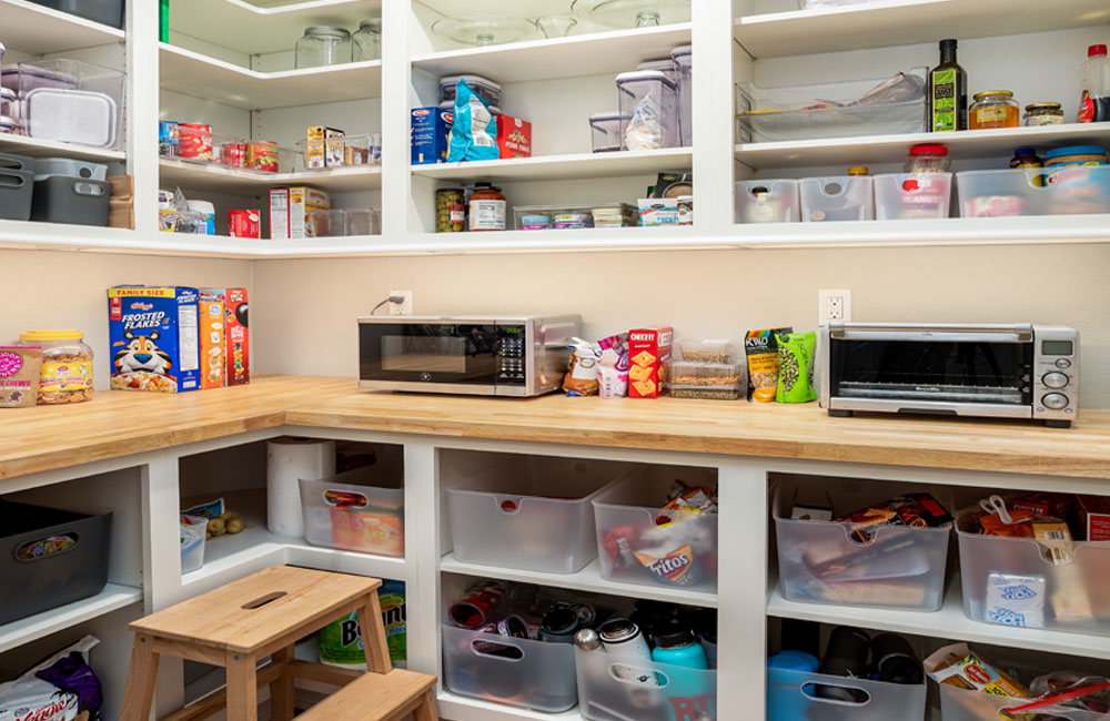 A walk-in pantry is the perfect place for extra outlets. You might even determine that some of your kitchen appliances like your microwave can just stay plugged in in the pantry all the time, giving you more counter space for baking or craft projects. Beware, you may enjoy your clutter-free counters so much that you start eating out more just to keep them bare.